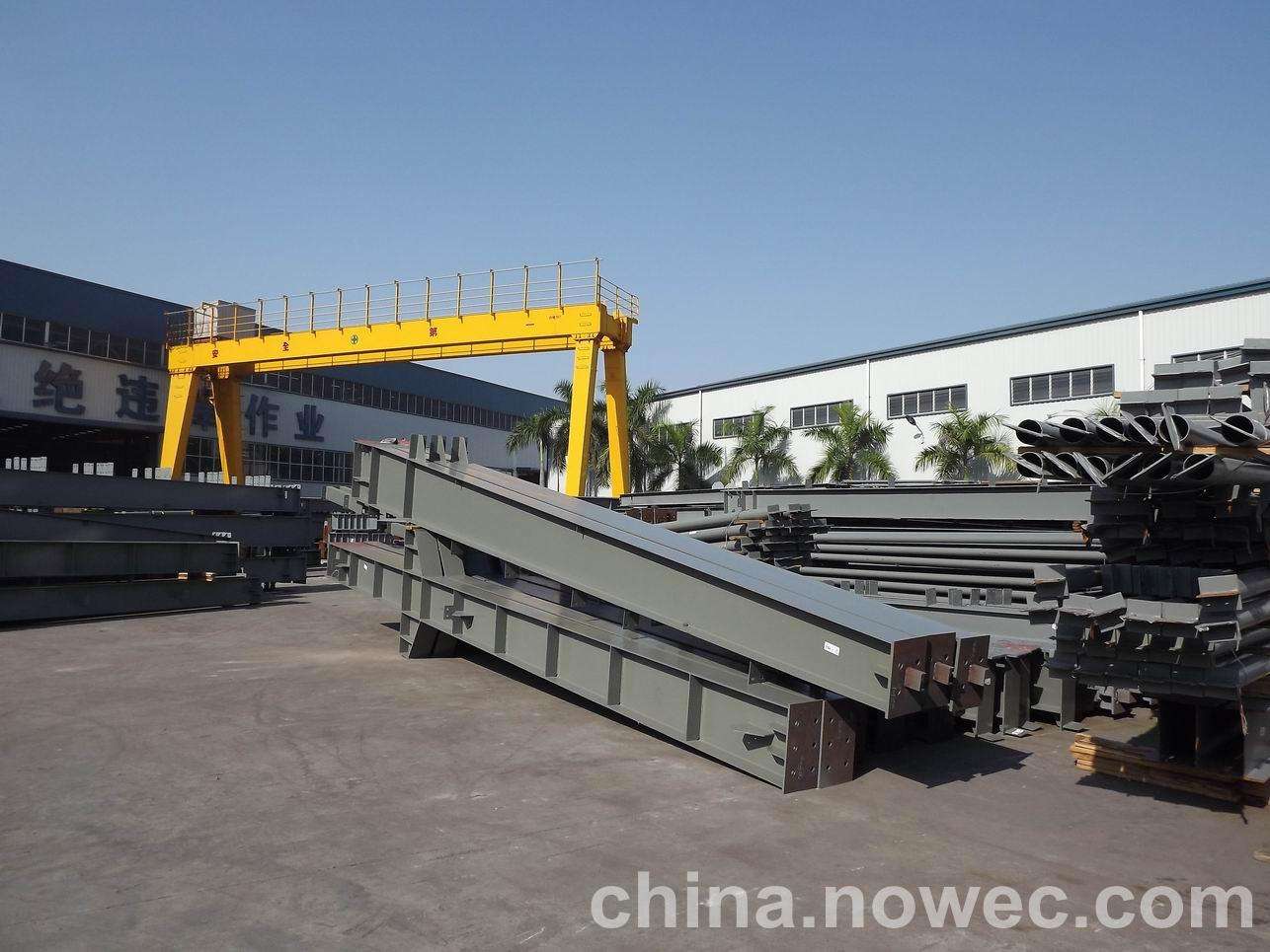 条状单元一般沿长跨方向分割,其宽度约为1~3个网格,其长度为l2或l2/2(l2为短跨跨距)。块状单元一般沿江阴网架平面纵横向分割成矩形或正方形单元。每个单元的重量以现有起重机能胜任为准。条(块)与条(块)之间可以直接拼装,也可空一网格在高空拼装。由于条(块)状单元是在地面拼装,因而高空作业量较高空散装法大为减少,拼装支架也减少很多,又能充分利用现有起重设备,故较经济。这种安装方法适用于分割后网架的钢度和受力状况改变较小的各类中小型网架,如两向正交正放四角锥、正放抽空四角锥等网架。